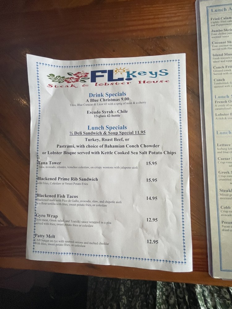 Florida Keys Steak and Lobster House offers a wide range of options for all dietary preferences, including Keto and vegan options. The establishment provides excellent service, as noted by satisfied customers who praise the attentive staff. The menu boasts a variety of dishes, from conch fritters bursting with flavor to perfectly prepared steak and lobster. The presentation of the food is stunning, and the dishes themselves are described as heavenly. The key lime pie is a must-try for a sweet ending to your meal. With a full bar offering a selection of wines, cocktails, and happy hour specials, this restaurant is perfect for any occasion. Make sure to ask for Stacy, a standout server who goes above and beyond to ensure a memorable dining experience. Whether it be a casual lunch or a special dinner, Florida Keys Steak and Lobster House is a must-visit spot in Marathon, Florida.